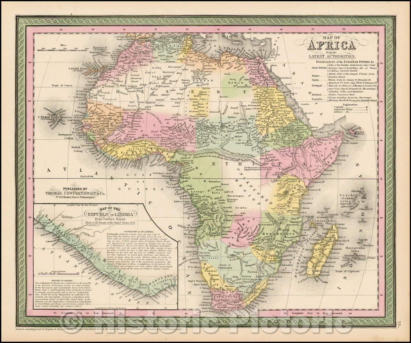 Historic Map Map of Africa from the Latest Authorities, 1850